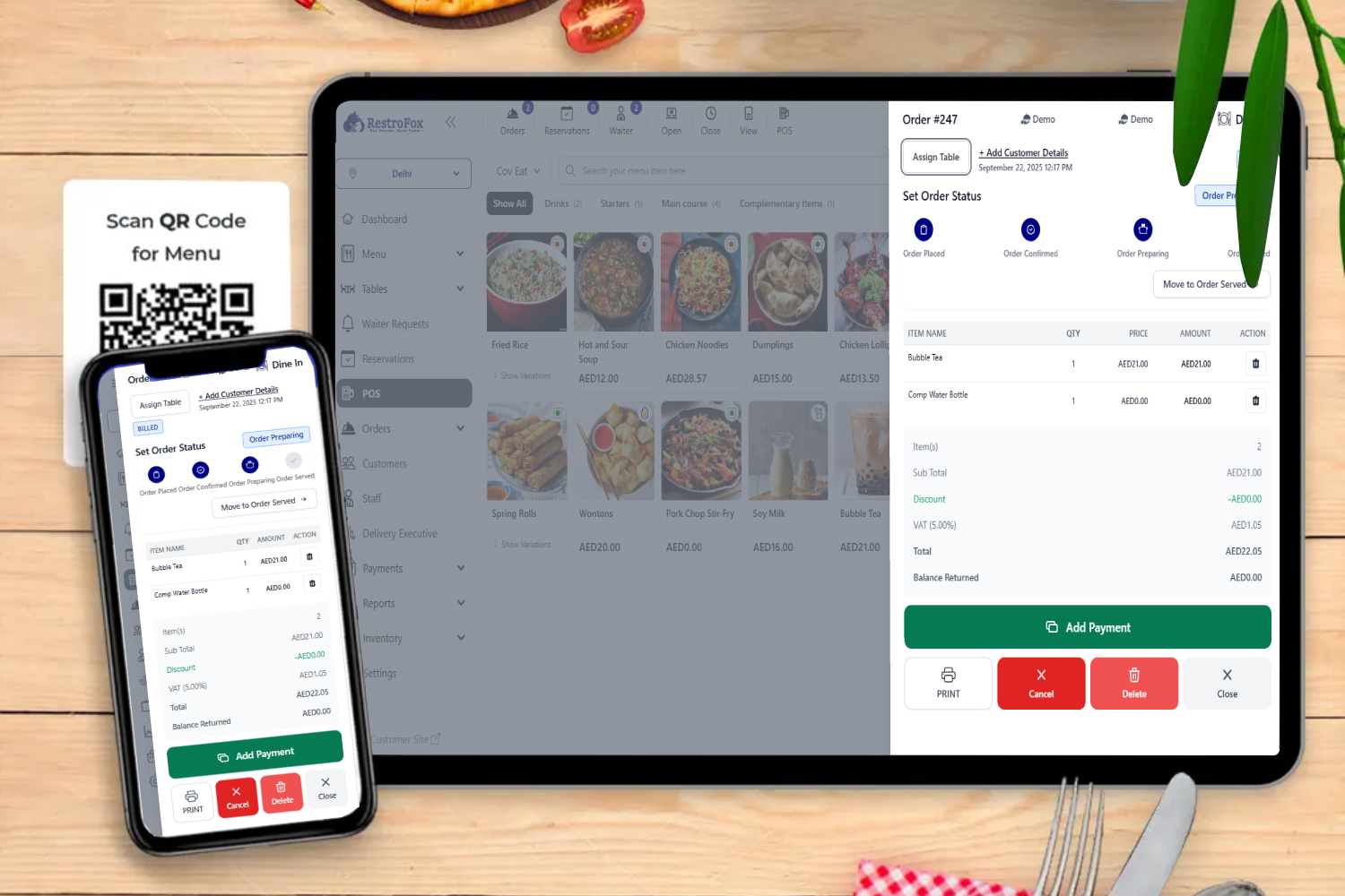 Operational Efficiency: Reduces order-taking time and minimizes errors through direct customer input Cost Reduction: Eliminates printing expenses and reduces labor costs for order processing Data Insights: Provides valuable analytics on customer preferences, popular items, and sales patterns Scalability: Easily accommodates business growth without proportional increases in operational complexity Competitive Advantage: Demonstrates technological innovation and modern customer service approaches